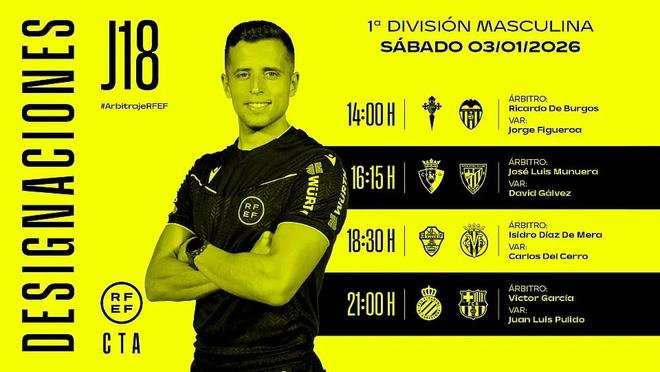 北京时间1月2日,西班牙足协官方公布了联赛第18轮第2比赛日的裁判名单,维克托-加西亚执法巴萨客战西班牙人。