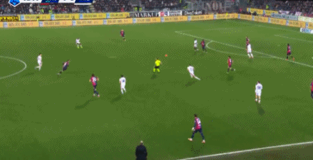 第3分钟,卡利亚里禁区外远射一脚,球打高了